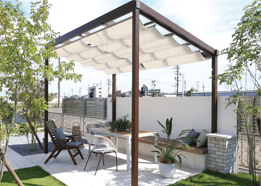 オプションも充実。シンプルスタイルには紫外線カット&温度低減効果のある「シェード」が、スリムスタイルには目隠しと快適性を両立する「アルミスダレ」が用意されており、用途や好みに応じてカスタマイズ可能です。どちらのスタイルも、見た目と機能を両立した上質な屋外空間を実現します。