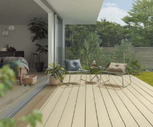 天然木の風合いを再現した人工木ウッドデッキ。木粉と100%リサイクル樹脂を配合し、左右非対称の溝が織りなす陰影や色ムラが、まるで本物の木のようなナチュラルな表情を生み出します。湿気による腐食やシロアリの被害、干割れやささくれの心配がなく、お子さまやペットがいても安心。表面の汚れは水洗いで落とせ、キズもサンドペーパーで簡単に補修できます。カラーは4色展開で、住宅の外観やお好みに合わせたコーディネートが可能。見た目の美しさとメンテナンス性を兼ね備えた、安心・快適なウッドデッキです。